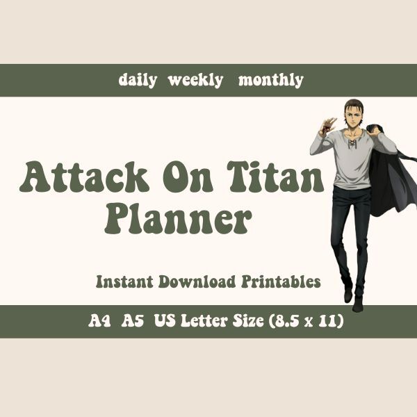 Attack On Titan Daily Weekly Monthly Planner